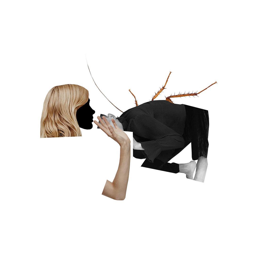Мені 28 років, ніби-то 🙂 Уже років шість працюю на фрилансі, вдома. Спершу я займалася дизайном, потім мене захопили колажі: вирізання, склеювання, причудливі сюжети, які з цього виходили. Робила їх для себе, постила на свої сторінки у соцмережах.