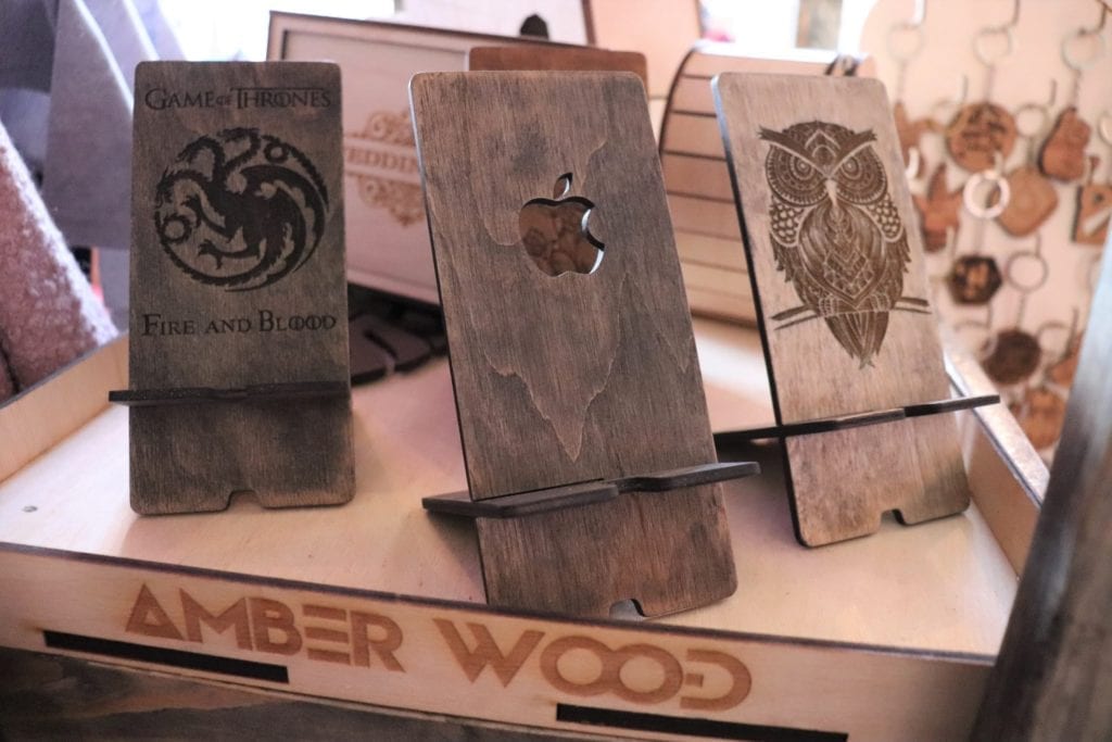 Виробів у нас дуже багато. Починаючи від підставок під телефони і закінчуючи коробками, розділочними дошками, блокнотами та полігональними портретами. Також виконуємо індивідуальні та корпоративні замовлення.