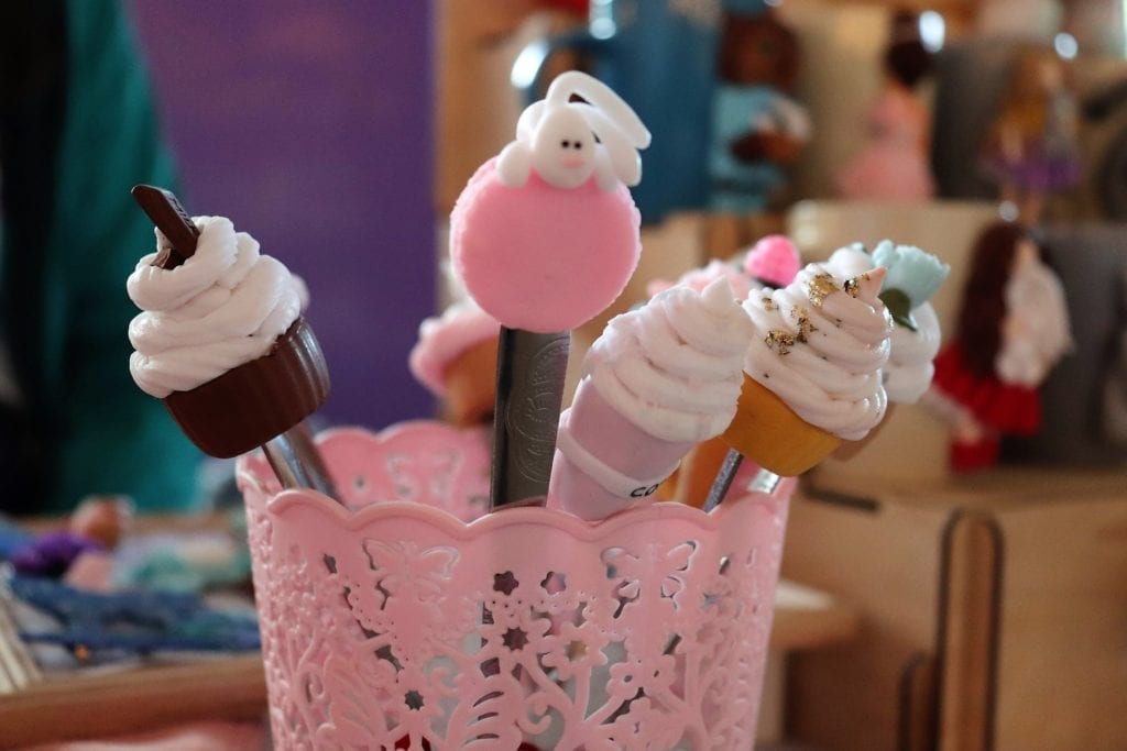 Основні мої вироби — чашки з декором. Серед них найбільше тих, що декоровані дівчатками, стилізованими під ляльок Тільда та медведиками Тедді. Також я виготовляю ложки та баночки зі всіляким «смачним» декором та звірятками, брошки, блокноти і нещодавно почала шити інтер’єрних ляльок. Їх можна зробити схожими на господиню, підібравши колір волосся, зачіску та одяг.
