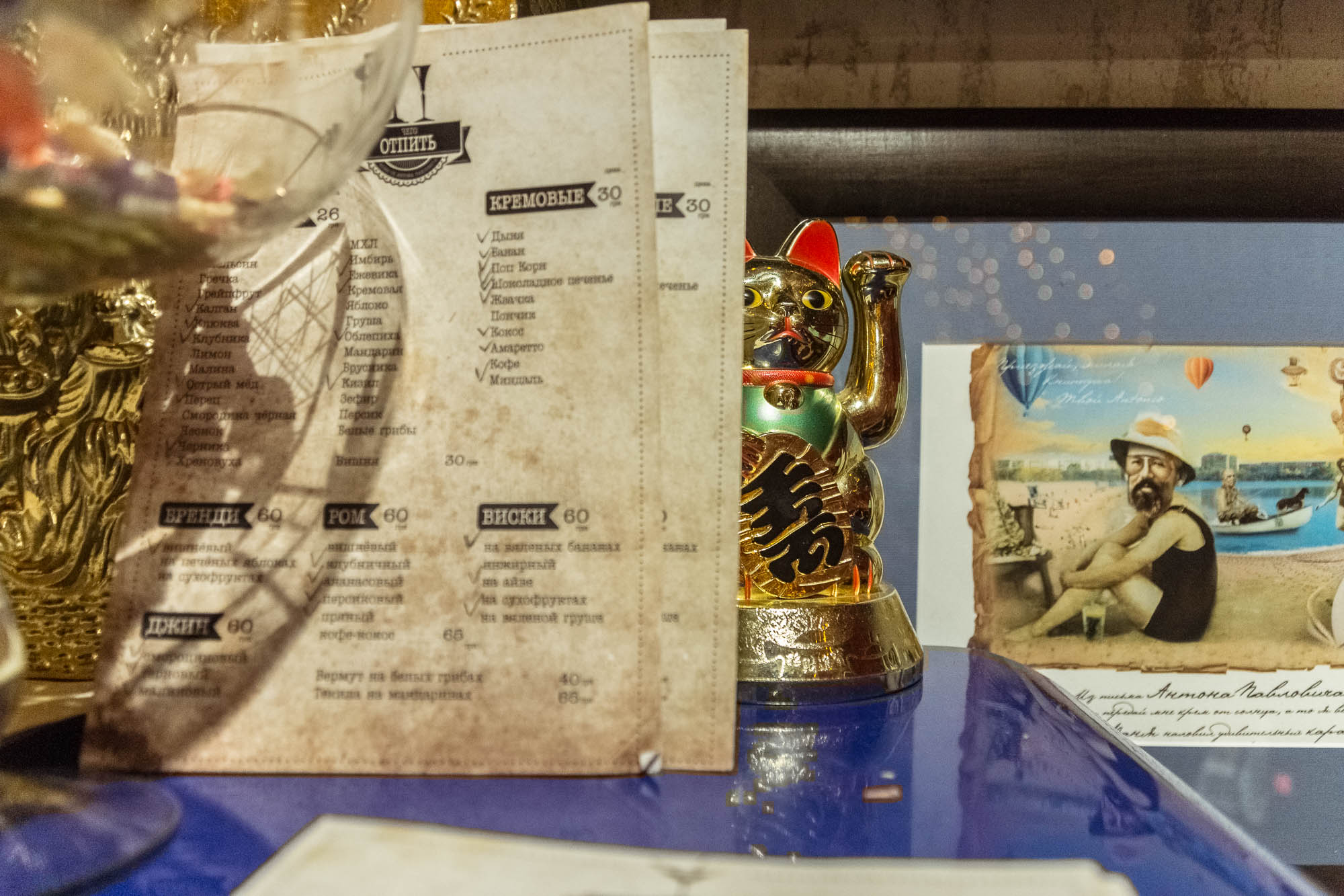 Сама ж назва Chekhoff's була придумана ще до того, як я почав займатися цим кафе. Була замовлена дорога вивіска і я вже нічого не міг з цим зробити, бо вона коштувала дуже багато грошей