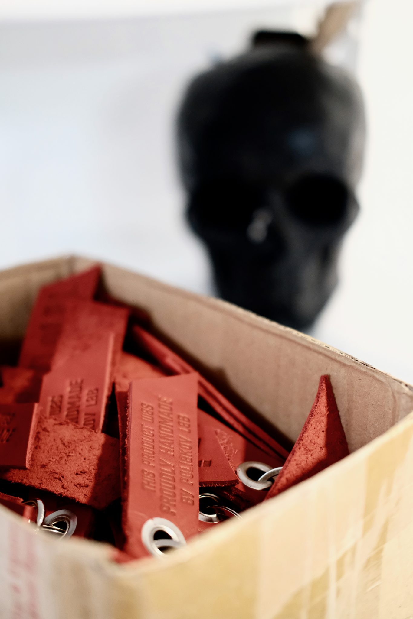 Більшість дізнається наші вироби за червоними бирками. Але з'явилися вони не одразу і не як прикраси для сумок. Просто якось сиділи й схотіли зробити собі брелок з підручних матеріалів. Згодом зрозуміли, що це має бути виріб «з великої літери», тож підібрали для нього кращі металеві елементи й «правильну» шкіру. Останню купуємо лише для брелків, сумки ми з них не ш'ємо.