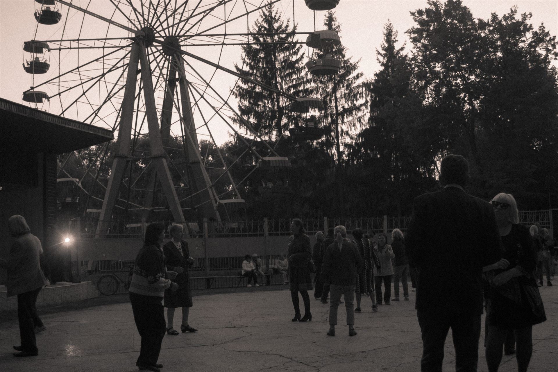 Сутеніє. На годиннику — майже восьма, на танмайданчику — розпал вечірки. «Ви не танцюєте?» — долітає крізь «Візьми мене в полон!» та «Ніжними словами» Винника. То директор, Олександр Володимирович, прийшов проконтролювати ситуацію. Говорить, що скоро кінець. Вечір, холодно, освітлення — хіба тільки з атракціонів, так і вони закриваються скоро.