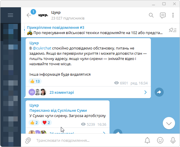Саме така підтримка і делегування обов’язків дозволяли нам не просто залишатися ефективним джерелом інформації, а й включатися активніше у волонтерську діяльність, надавати майданчик тим людям, що забезпечували тероборону з перших днів. Ми інформували про потреби у донорах крові, оновлювали інструкції, карти укриттів, закликали повідомляти про пересування ворога на Сумщині та за лічені години могли зібрати кошти на автівку або інші потреби захисників.