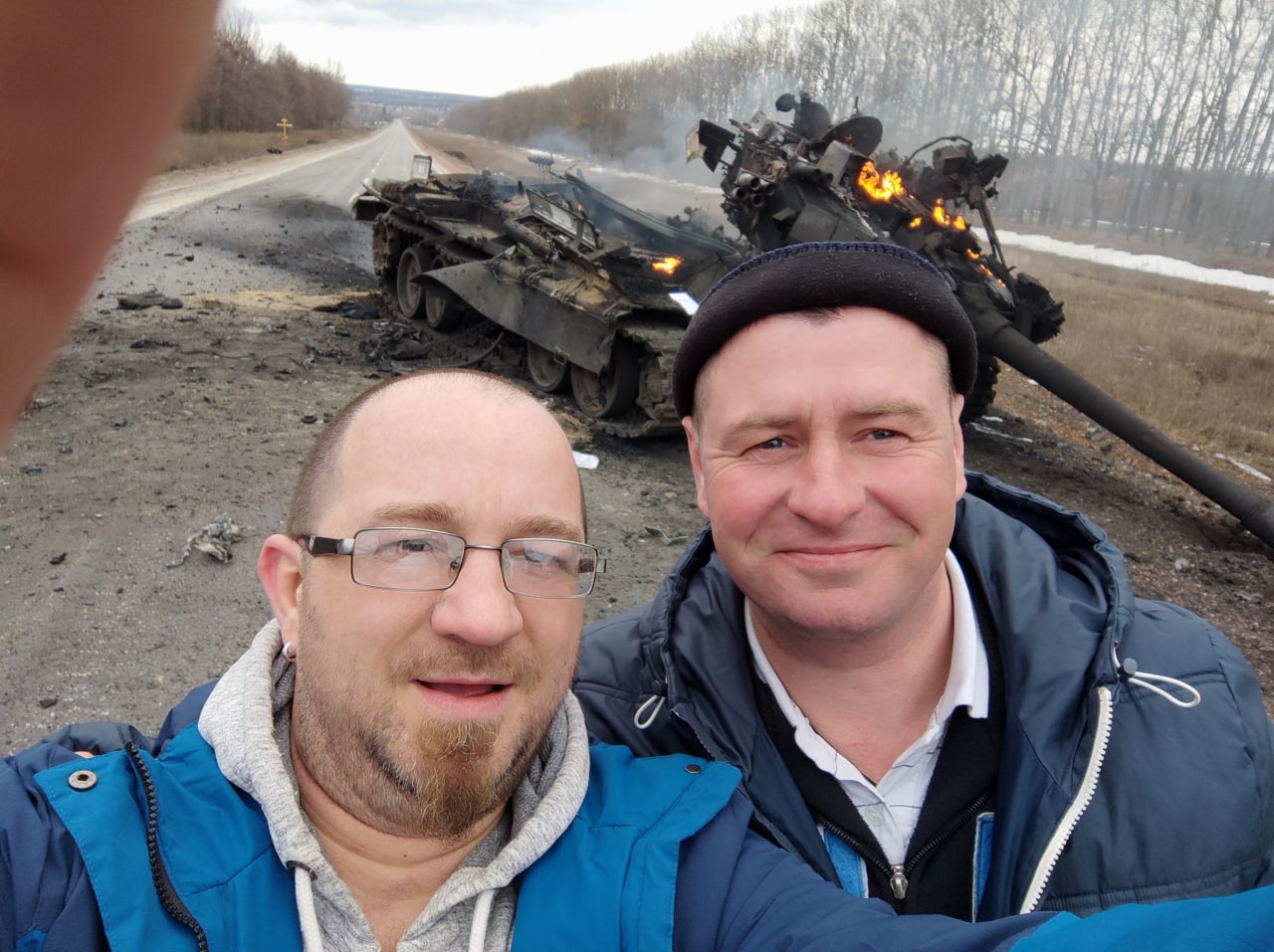 Коли підходили ближче, до нас під'їхала машина місцевих, які сказали, що танк заведений, бо з нього йде дим. Зізнаюся — стало трохи лячно. За 40 років були різні життєві ситуації, але саме в той момент я отримав найбільшу дозу адреналіну. Я прекрасно розумів, що мене можуть вбити, але в країні війна, тож морально був готовий померти.