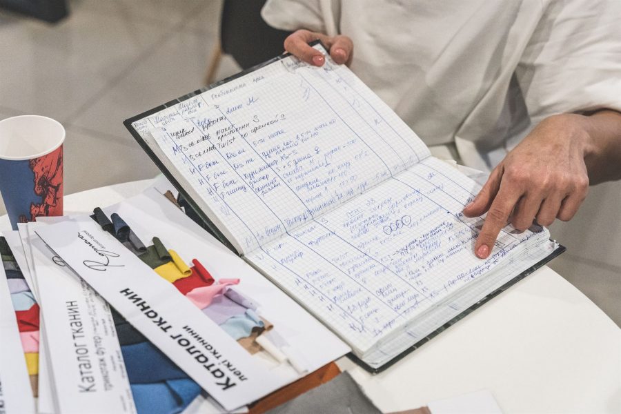 Тетяна: Протягом чотирьох років наша фішка полягала в індивідуальному підході. Вислуховую бажання кожної людини, аналізую та записую в нотатник характеристики одягу. Потім переношу це до журналу крою і ставлю задачу закрійнику. Якщо подивитися туди, можна збожеволіти. Там прописані замовлення, тканина, модель, нюанси крою, термін, клієнт. За цим зошитом також видаємо замовлення в шоурумі чи доставкою. Намагаємося пропонувати моделі в обмеженій палітрі кольорів для зручності виробництва та клієнта.
