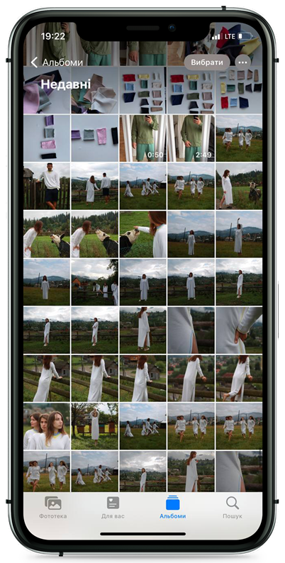 Роман: Телефон на 90% використовую для роботи. У галереї 9 тисяч фото, пов’язаних із Rozmova: знімки екранів, тканин, замовлення, фото моделей. Нещодавно відпочивали в Карпатах, навіть тоді влаштували фотосесію моделей у Ворохті. Ще є тисяча особистих фоток із дівчиною, мамою, іншими родичами.