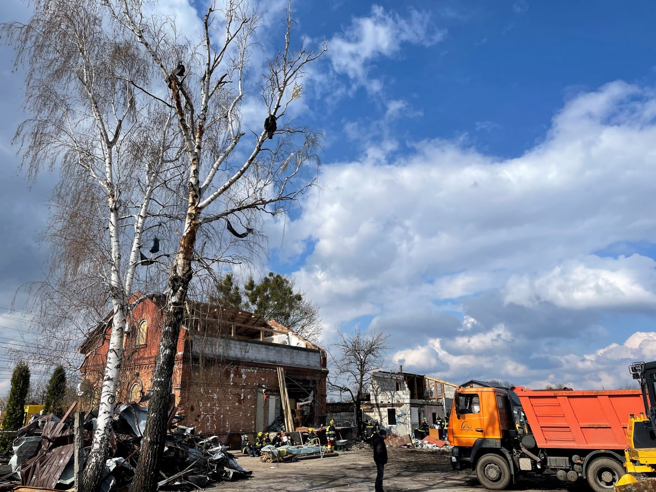 Сьогодні на місці трагедії працює зведений загін Міжрегіонального центру швидкого реагування ДСНС України з міста Ромни. Хлопці жартують, що головне правило їх відряджень — ніколи не знаєш як довго будеш у відрядженні. Говорять, що роботи тут дуже багато. І попри те, що з наслідками військових дій вони працюють з 2014 року, на виїздах до Луганської та Донецької областей, на руйнування від авіаудару вони приїхали вперше.