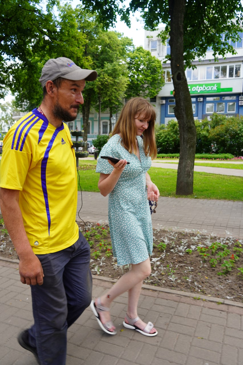 Сергій розповідає, що впродовж дня прибирає увесь центр та окремі території біля офісів, але найбільше любить працювати біля пам'ятника Альоші. Кілька секунд чоловік мовчки оглядає свої руки. Вони загорілі й де-не-де пошкрябані.