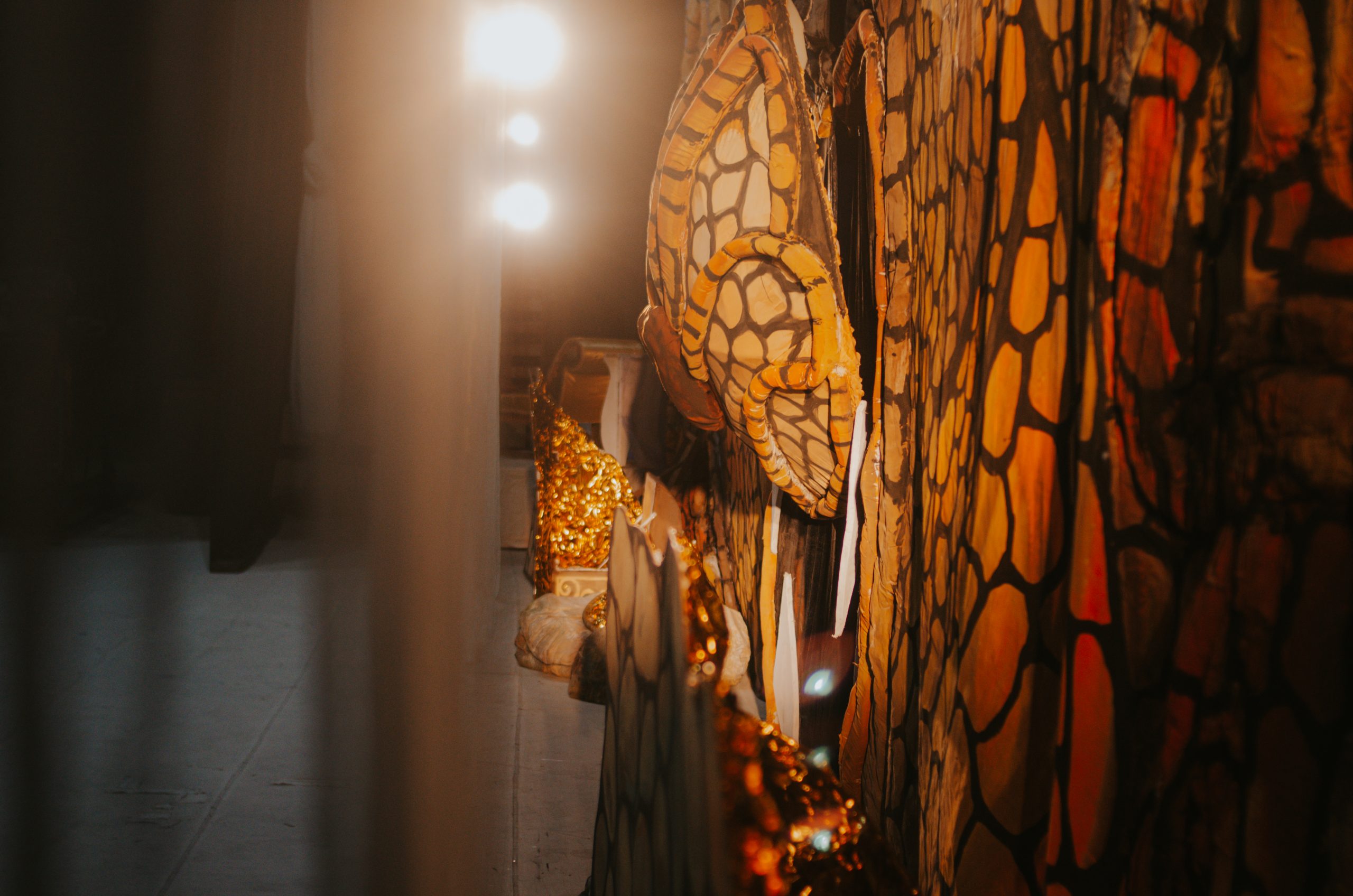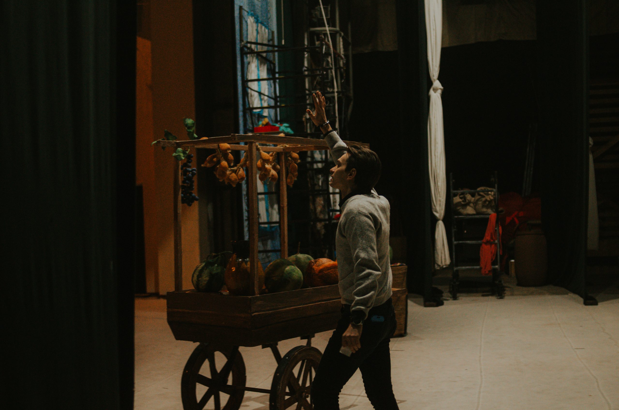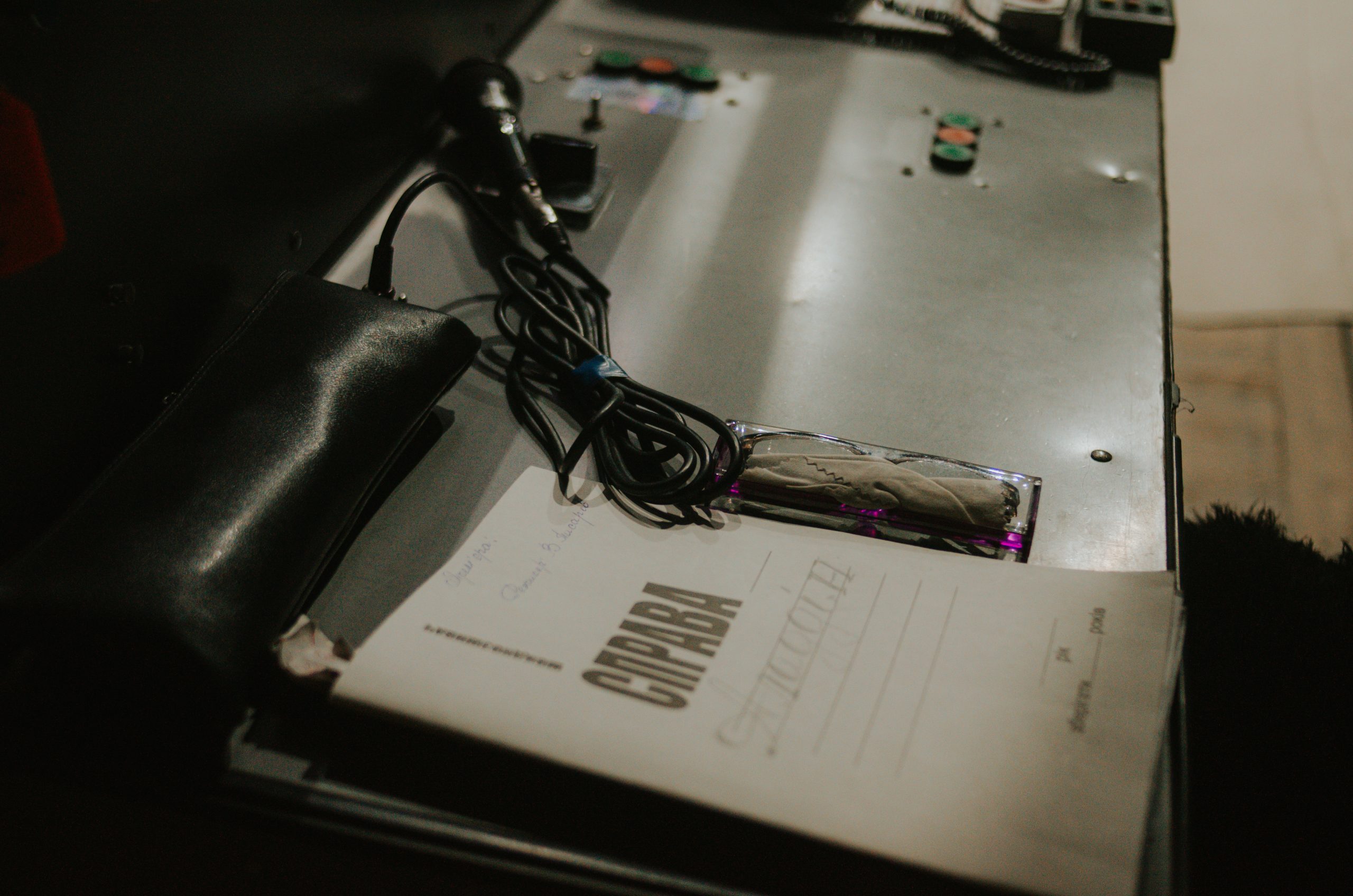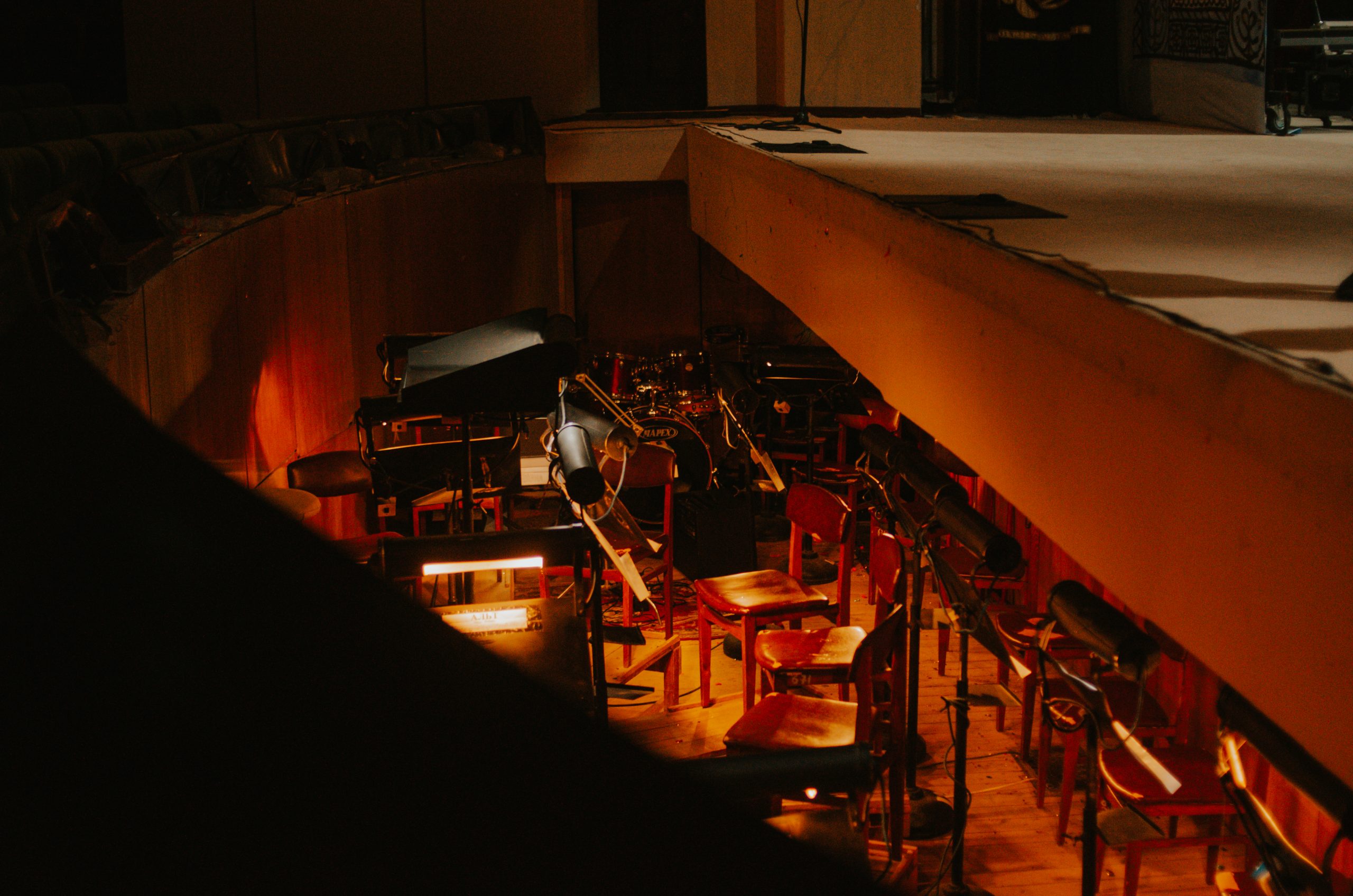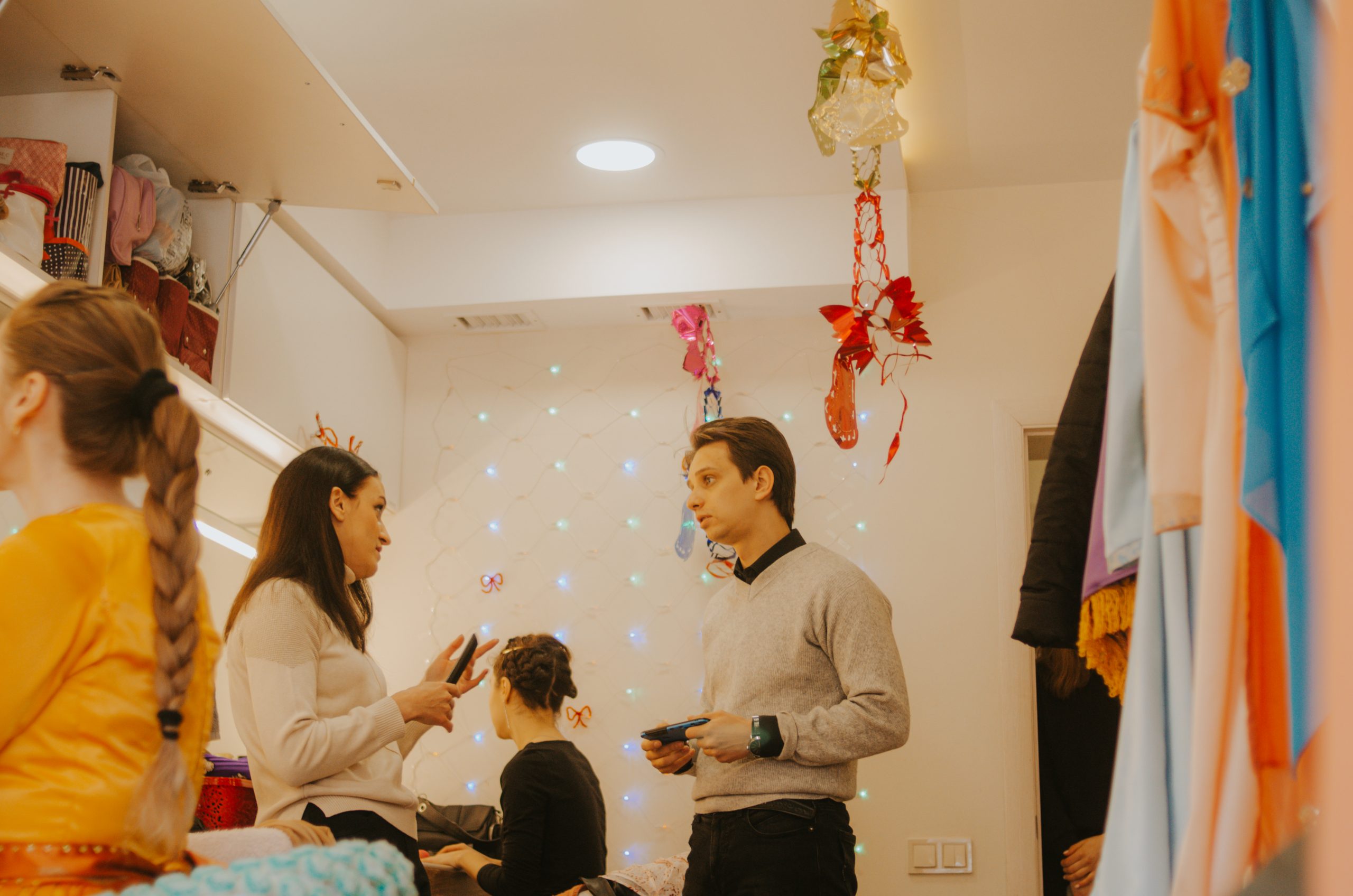 У процесі забігу між гримерками та сценою вирішуються питання зі світлом і фінальними декораціями, розспівуються актори, перевіряється звук та готовність музикантів. За кулісами важко затримати на комусь погляд довше, ніж на хвилину — кожен зосереджено кудись біжить, когось шукає та щось намагається вирішити. І тільки Ірина Олександрівна — жінка, яка контролює технічні процеси під час вистави — залишається на своєму місці: біля мікрофонів і теки з написом «Аладдін».