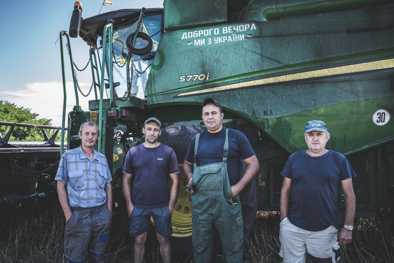 Від'їхавши за 20 кілометрів від міста, ми помітили заведену сільськогосподарську техніку, тож вирішили зупинитися. На полі стояли аграрії, які щось дуже емоційно обговорювали. У цей день вони виїхали на польові роботи на своїх комбайнах та тракторах. Деякі їхні колеги сьогодні поїхали працювати впритул до російського кордону. Чоловіки дуже приязно відгукнулися на прохання сфотографуватись, а також розповіли, що сумські поля максимально постаралися засіяти, тож врожай цього року має визріти не зважаючи на повномасштабне вторгнення.