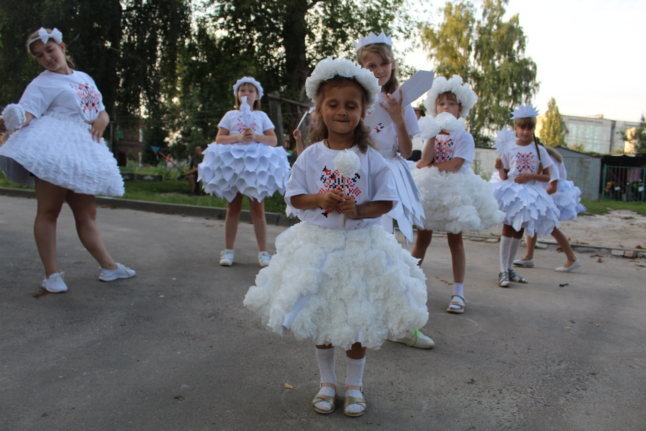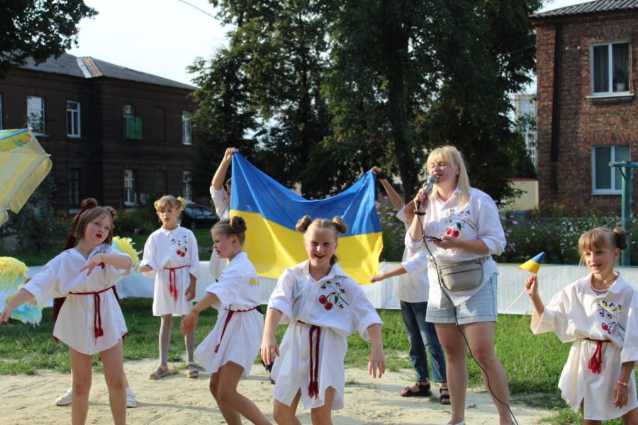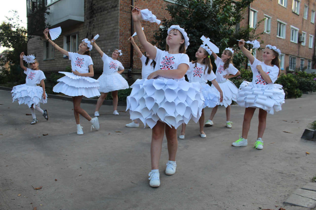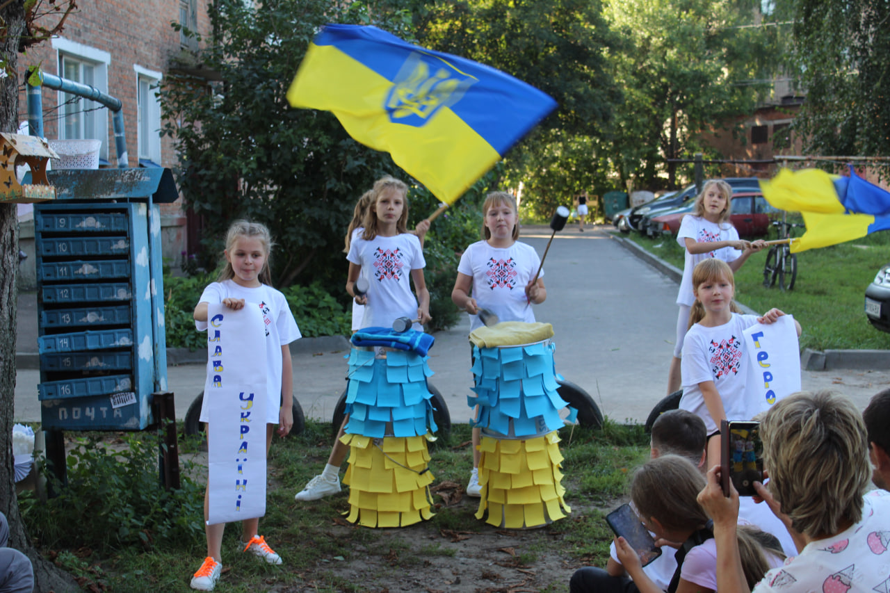 Найцікавіше те, що діти самі були ініціаторами всього, що відбувається зараз у дворі. Вони просили якихось подій. І ми, батьки, вирішили організувати для них концерт до Дня захисту дітей першого червня 2022 року. Діти самі обрали патріотичні пісні, які вивчили для концерту. Це і «Горить палає техніка ворожа», і гімн України, і багато інших. Ми розмалювали їм футболки: написали на них «З Україною в серці», і додали зображення серця – покоцане і синьо-жовте.
