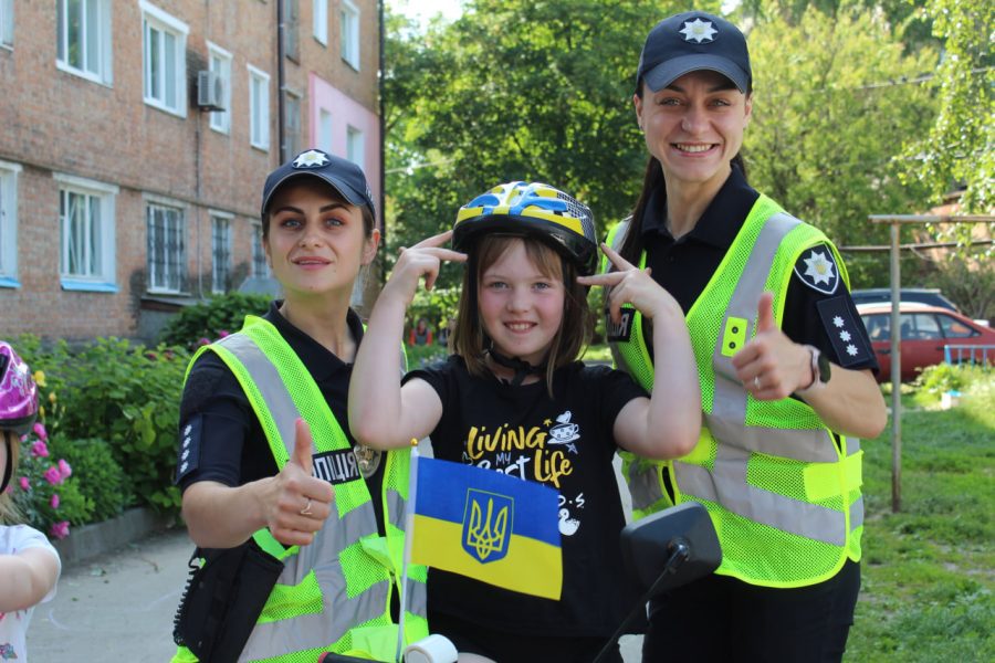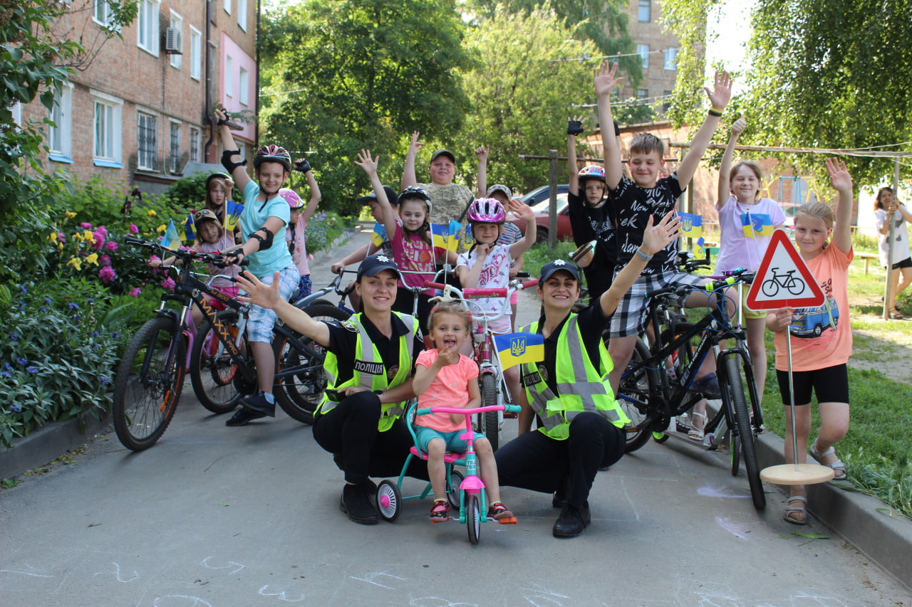 Потім нам з Національної поліції написали: «У вас такий дружний двір, давайте ми до вас приїдемо і щось розкажемо?». Тоді провели у нас заняття про вибухонебезпечні предмети та як зібрати тривожну валізку. На другу зустріч ми вже самі їх покликали, аби вони розповіли дітям про правила дорожнього руху для велосипедистів.
