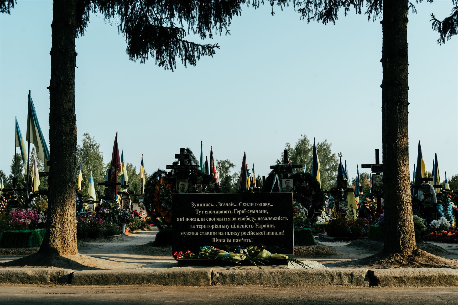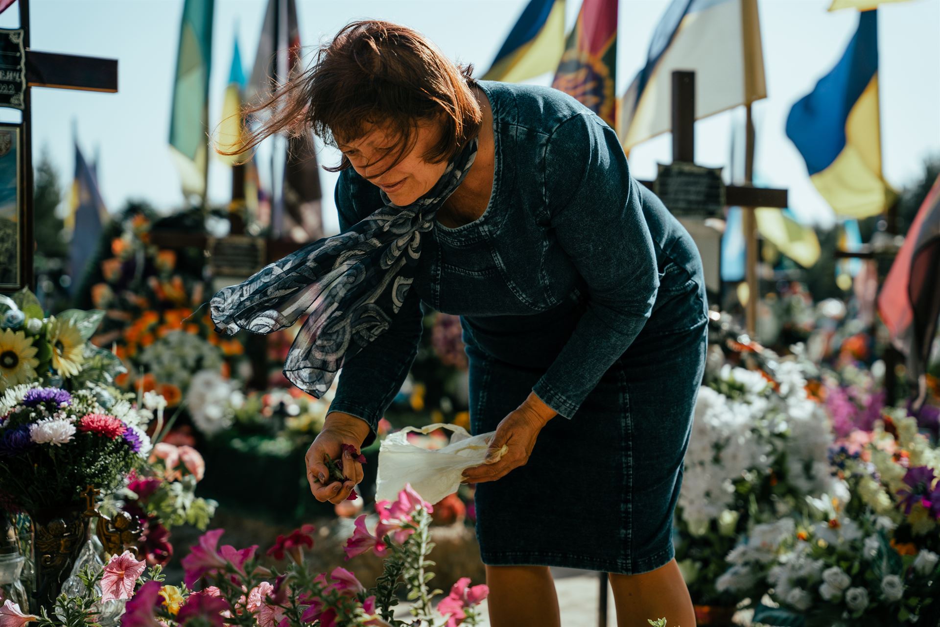 На цей цвинтар Аліна ходить не часто і сама. Робить це, коли відчуває потребу, не прив’язуючись до жодних свят чи подій. Кладе квіти — лише живі, штучних вона не любить, мовчки стоїть поруч із чоловіком і йде, як вона каже, «без істерик». Впоратися Аліні допомогла психологиня.