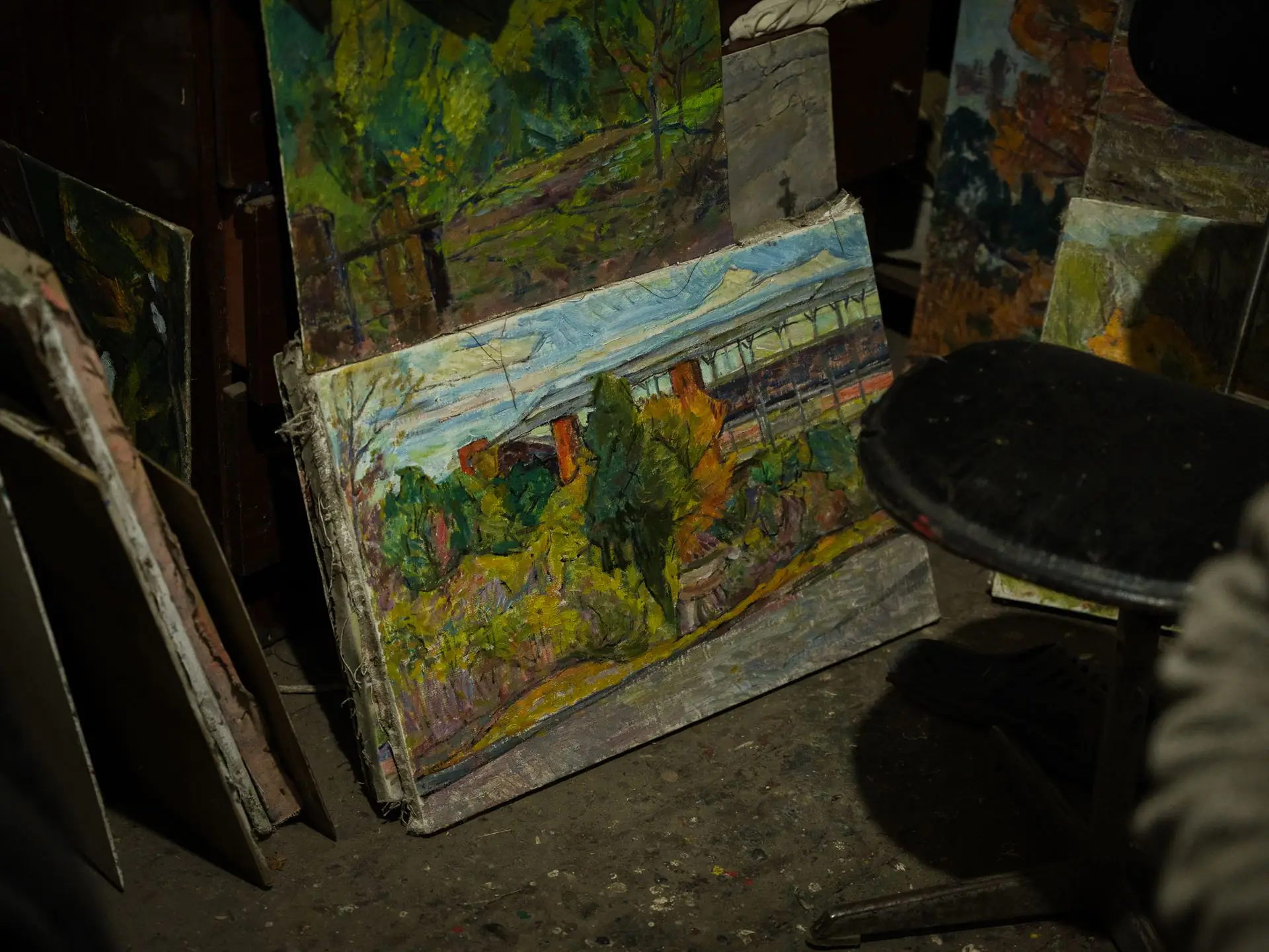 На горище Леонтій тепер підіймається рідко, говорить — важко. Коли будував дім, планував сидіти біля кожного великого вікна і малювати краєвиди. Робив спеціальні оглядові майданчики. На горищі зберігається колекція капелюхів для автопортретів і чимало картин, які необережно накидані купками.