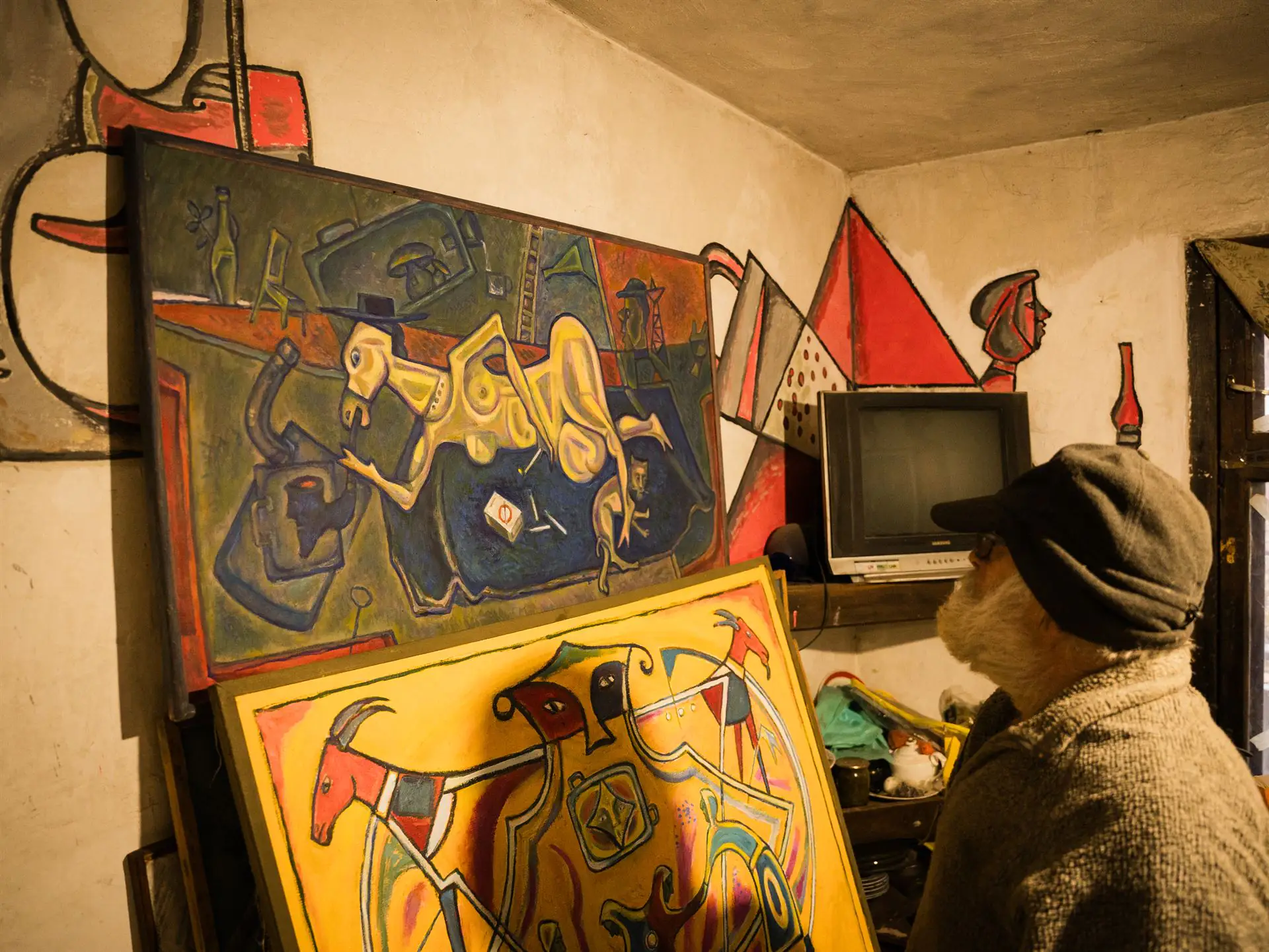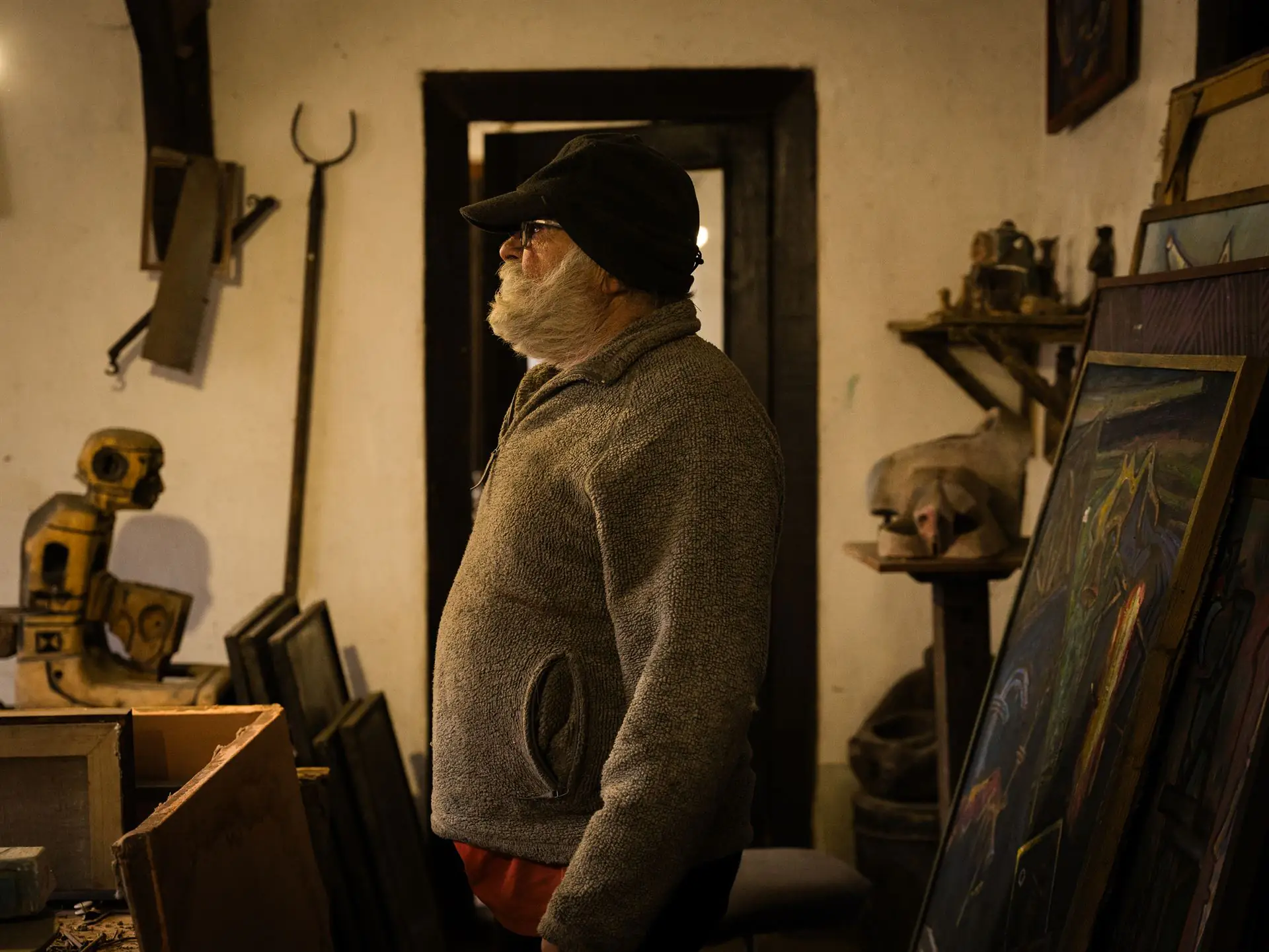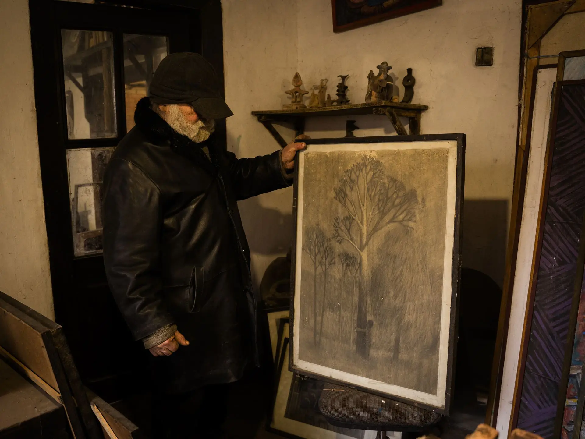 За життя чоловік створив власний світ — від підвалу, де раніше зберігав картоплю, а тепер разом із картинами ховається від бомбардувань, до горища з колекцією капелюхів для автопортретів. Крокуємо коридорами, аби дізнатися, як Леонтій Костур знайшов себе через дитинство, для чого годує курку задарма, і чому його називали «хрещеним батьком» Сум.