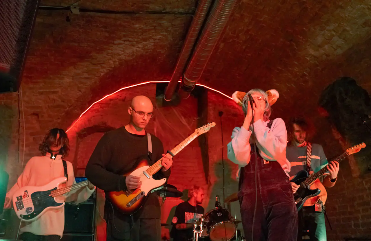Як і належить підземній споруді, «Погріб» зустрічає нас вогкістю. Тут прохолодно, тож хлопці одразу вмикають обігрівач. Загальний вигляд приміщення дивує поєднаннями: високі арки зі старої цегли існують поряд із сучасною технікою й освітленням. На одній зі стін висять паперові птахи, що залишилися після виставки експонатів зі сміття. Трохи далі, на столі, стоїть зо три десятки окопних свічок.