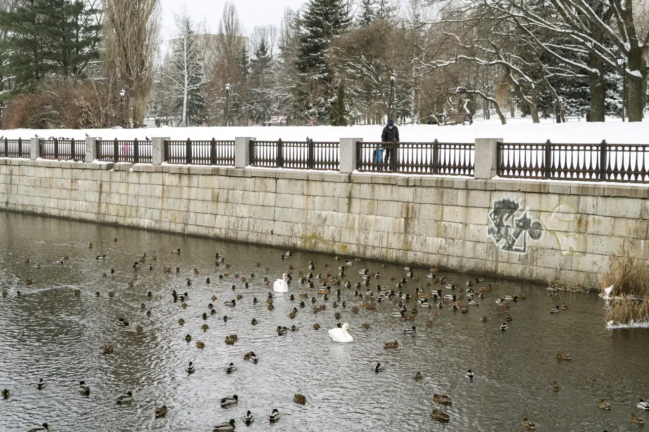 Ми стоїмо над річкою і якийсь час мовчимо, споглядаючи пару лебедів, які вирішили зимувати в нашому місті. Красу цього пейзажу псує очерет.